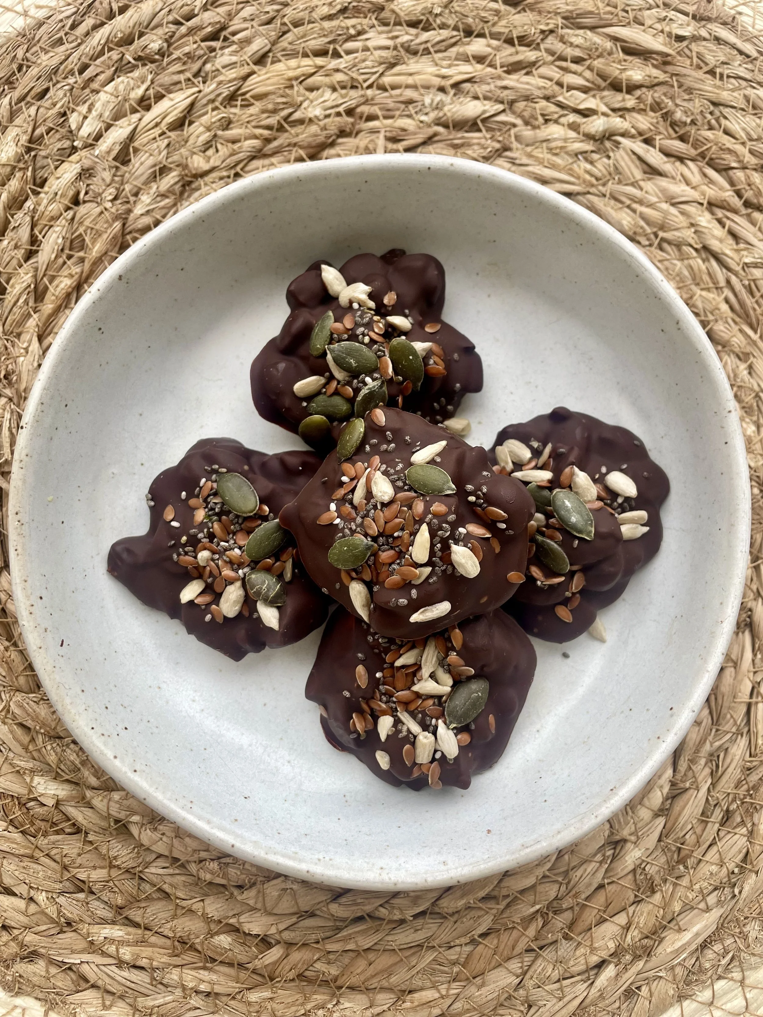Set in the fridge for 2+ hours. Remove them from their moulds or the baking sheet then place them into an airtight container in the fridge.